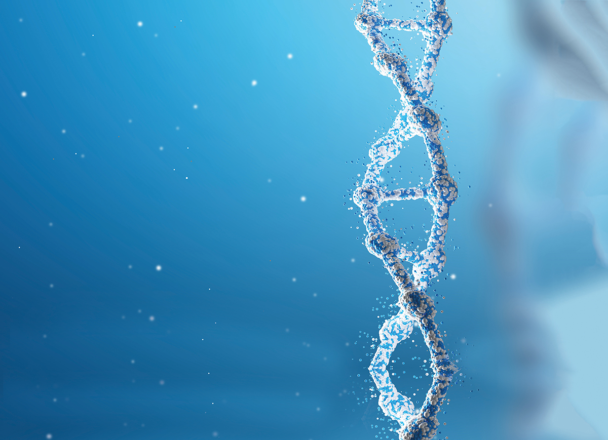 Blue vertical DNA chain against blue background