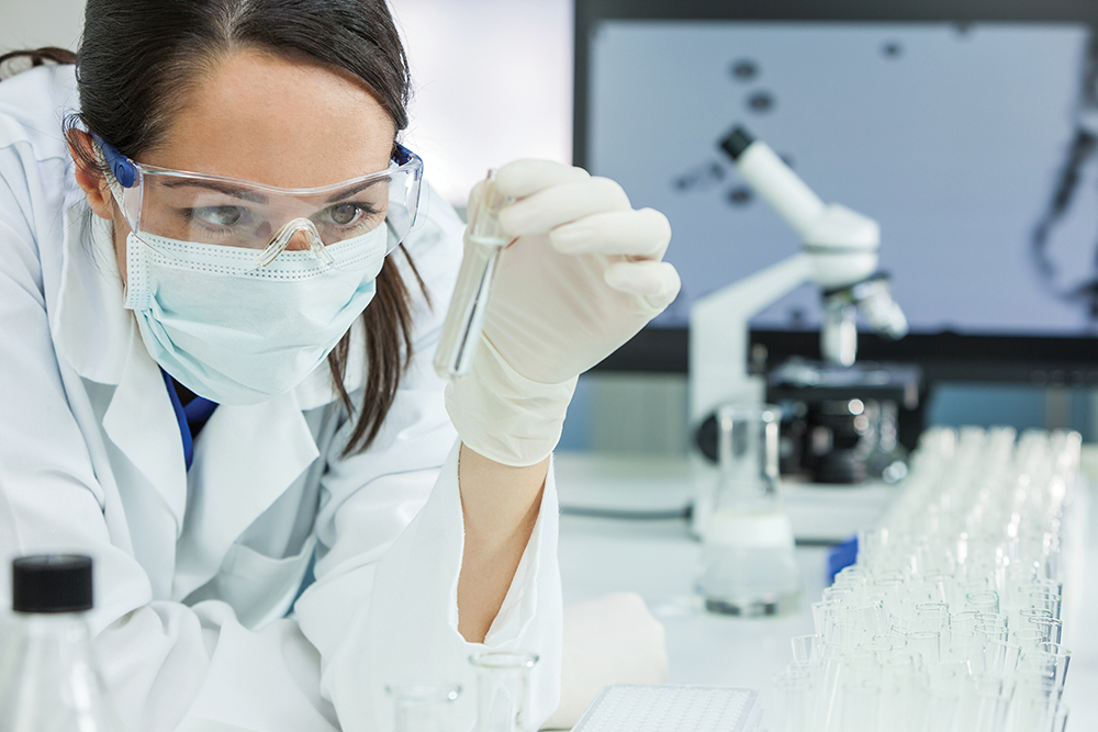Female Scientist or Woman Doctor With Test Tube In Laboratory