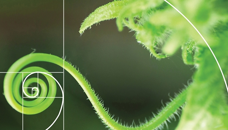 Illustration of spiral arrangement in nature. Golden Ratio conc