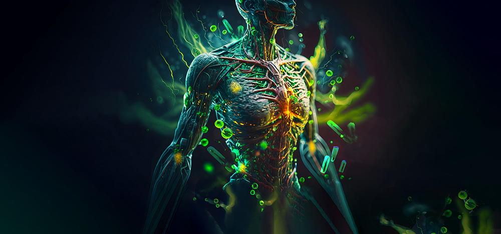 Lymphatic network, view of the thorax of the ribs of the arm. Generative AI