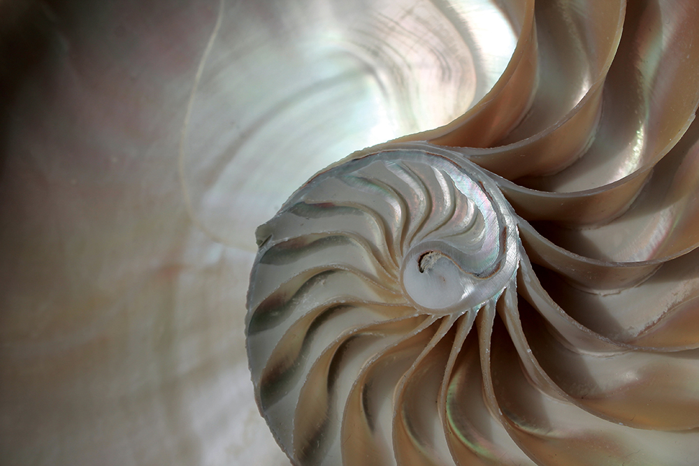 nautilus shell symmetry Fibonacci half cross section spiral gold