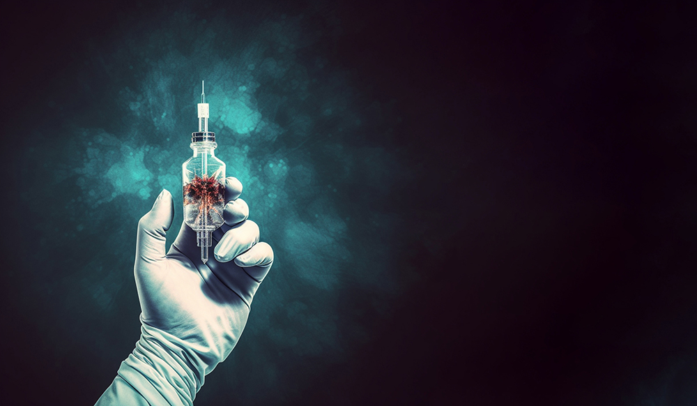 Scientist picking up a vial. Generative AI.