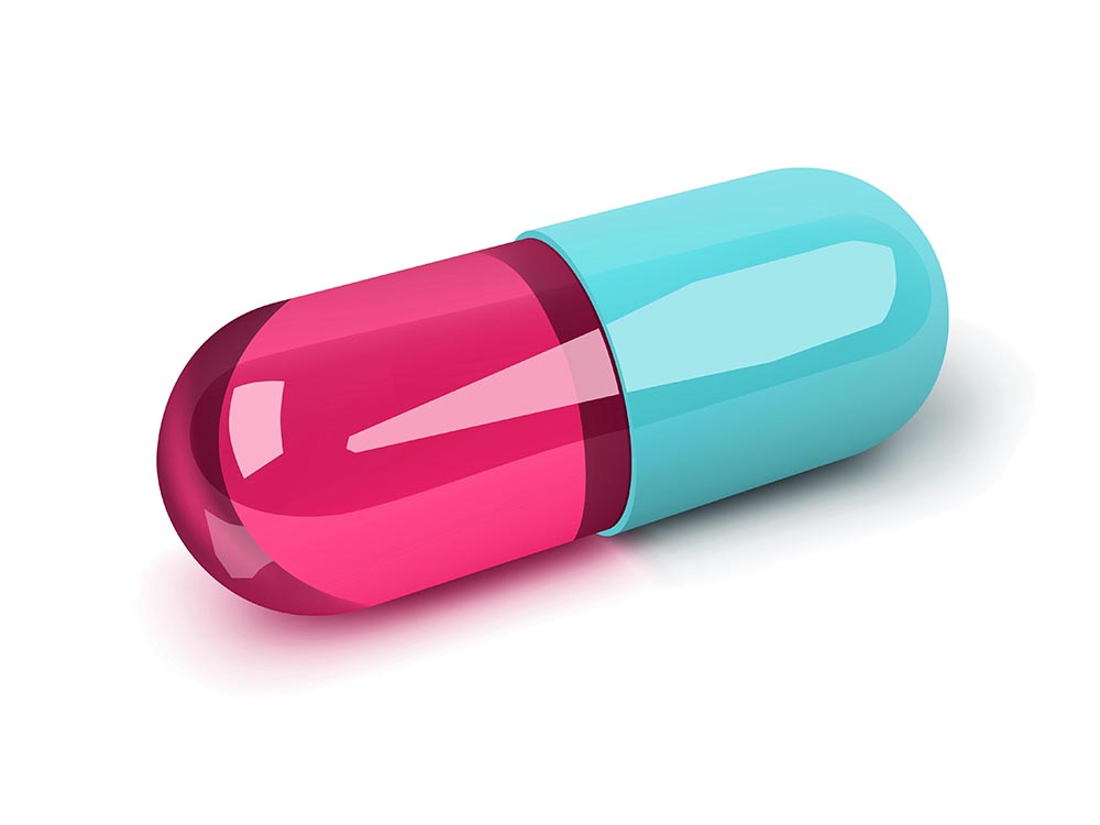 Vector realistic capsule pill isolated on white background. 3d vector capsule
